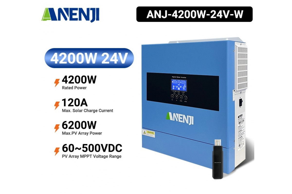 Гібридний інвертор Anenji 4200W 24V ANJ-4200W-24V-W (4200VA/4200W, Max CH 120A, AC 120) Wi-Fi
