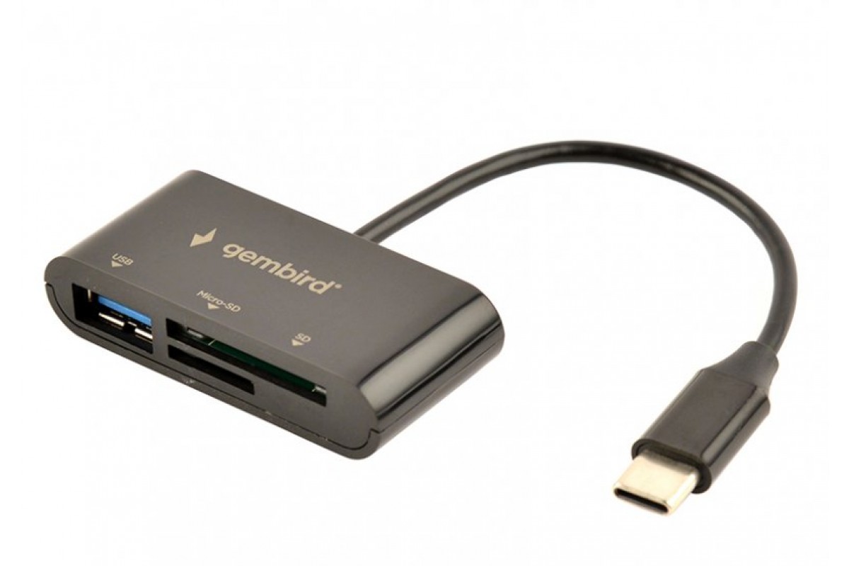 Кардрідер зовнішній Gembird Type-C SD/TF + USB2.0 Black (UHB-CR3-02)