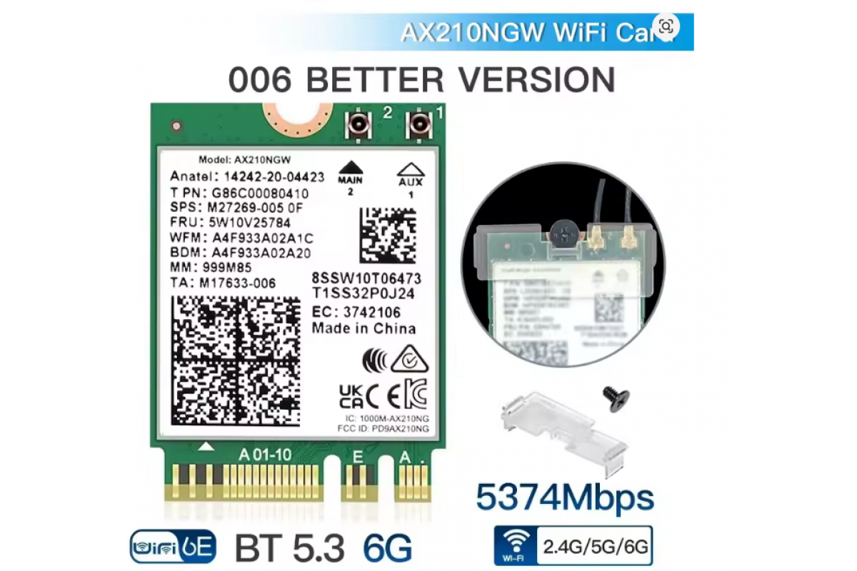 WiFi адаптер Intel AX1675X/AX210NGW WiFi6E 2.4Gbps 2.4/5Ghz Bluetooth 5.3 802.11AX