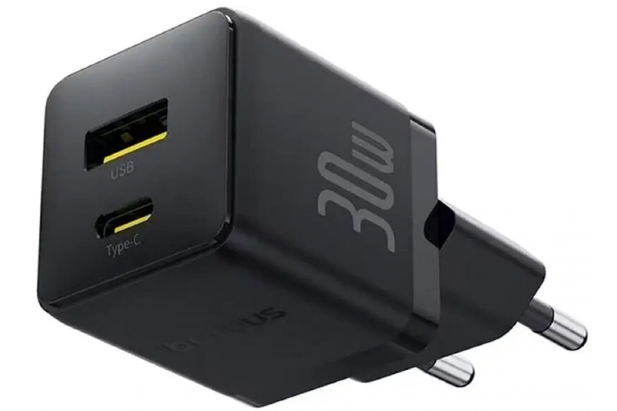 Мережевий ЗП Baseus Palm C+U 30W Black (P1011160A113-00) Швидка зарядка PD 3.0, QC 3.0 1*USB + 1*USB Type-C/3 A/5 - 12 V