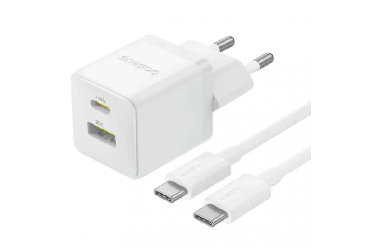 Мережевий ЗП Baseus Palm C+U 30W White + кабель Type-C - Type-C (P1011160A213-01) Швидка зарядка PD 3.0, QC 3.0, FCP, AFC, SCP 1